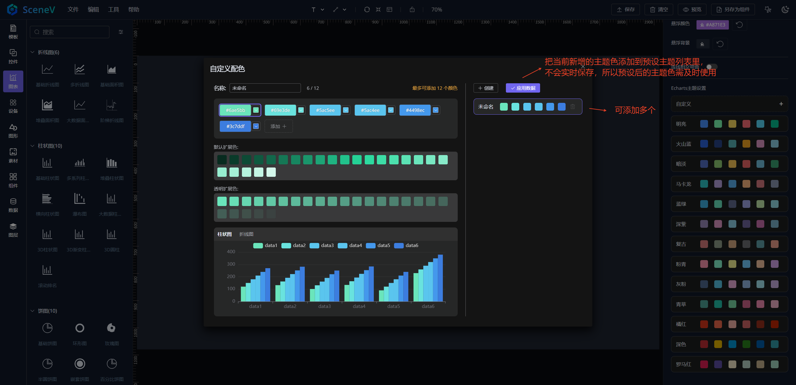 }这样,图表中的各个系列将自动使用定义好的颜色序列,无需为每个系列单独设置颜色。
