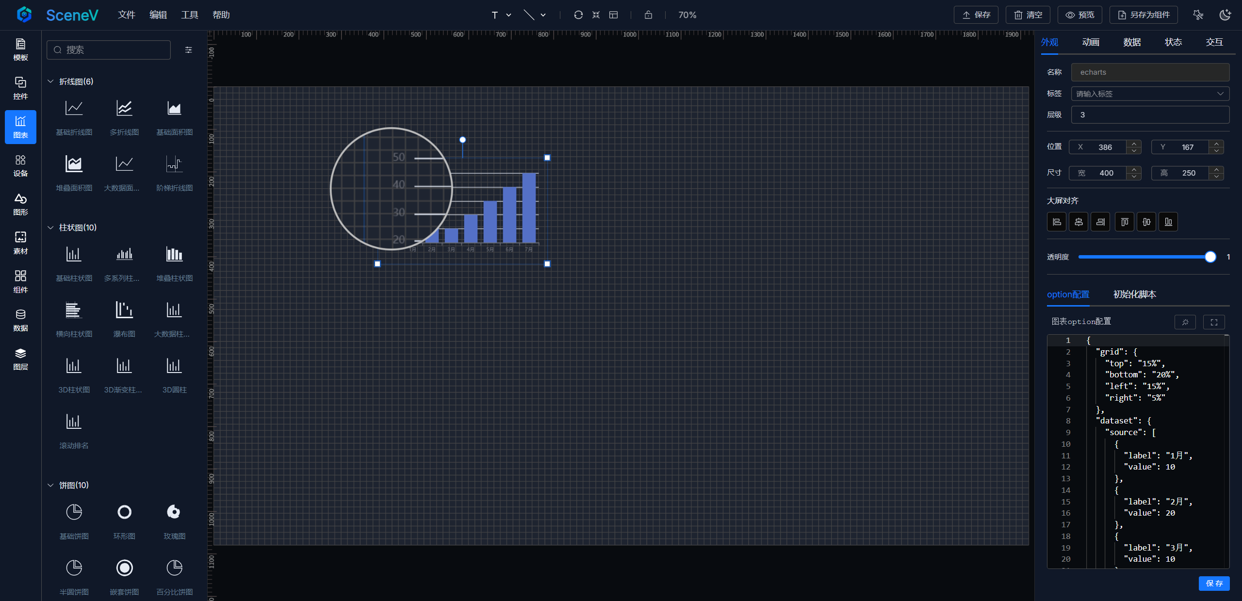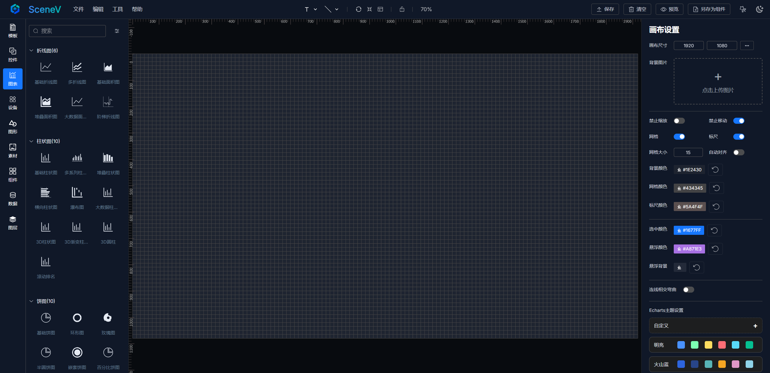 - 显示/隐藏网格:开启后,画布背景将显示网格线,帮助用户对齐图形。
