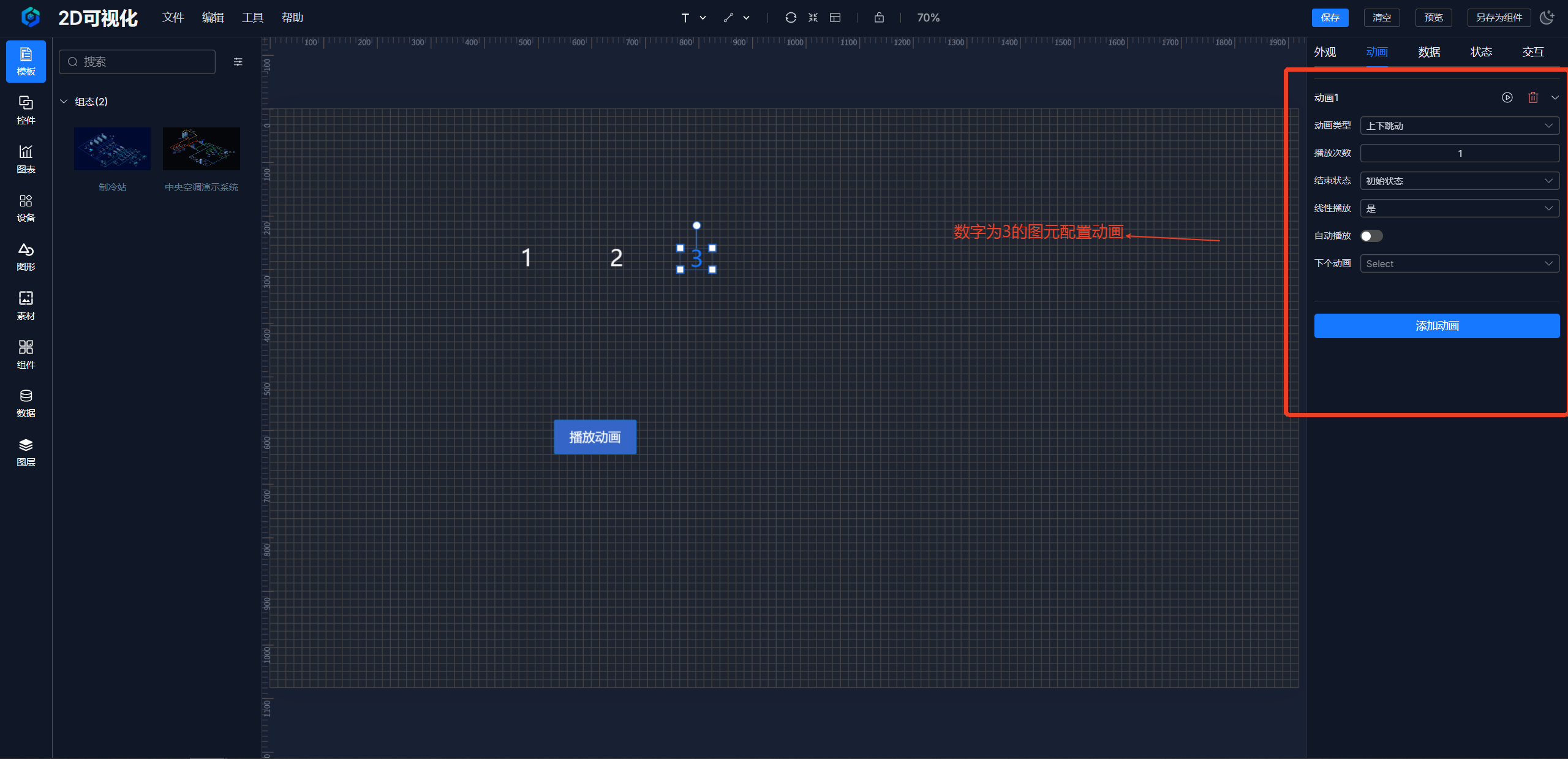 - 给文本为3的图元配置动画,然后给文本为2的配置动画,再给文本为1的配置动画