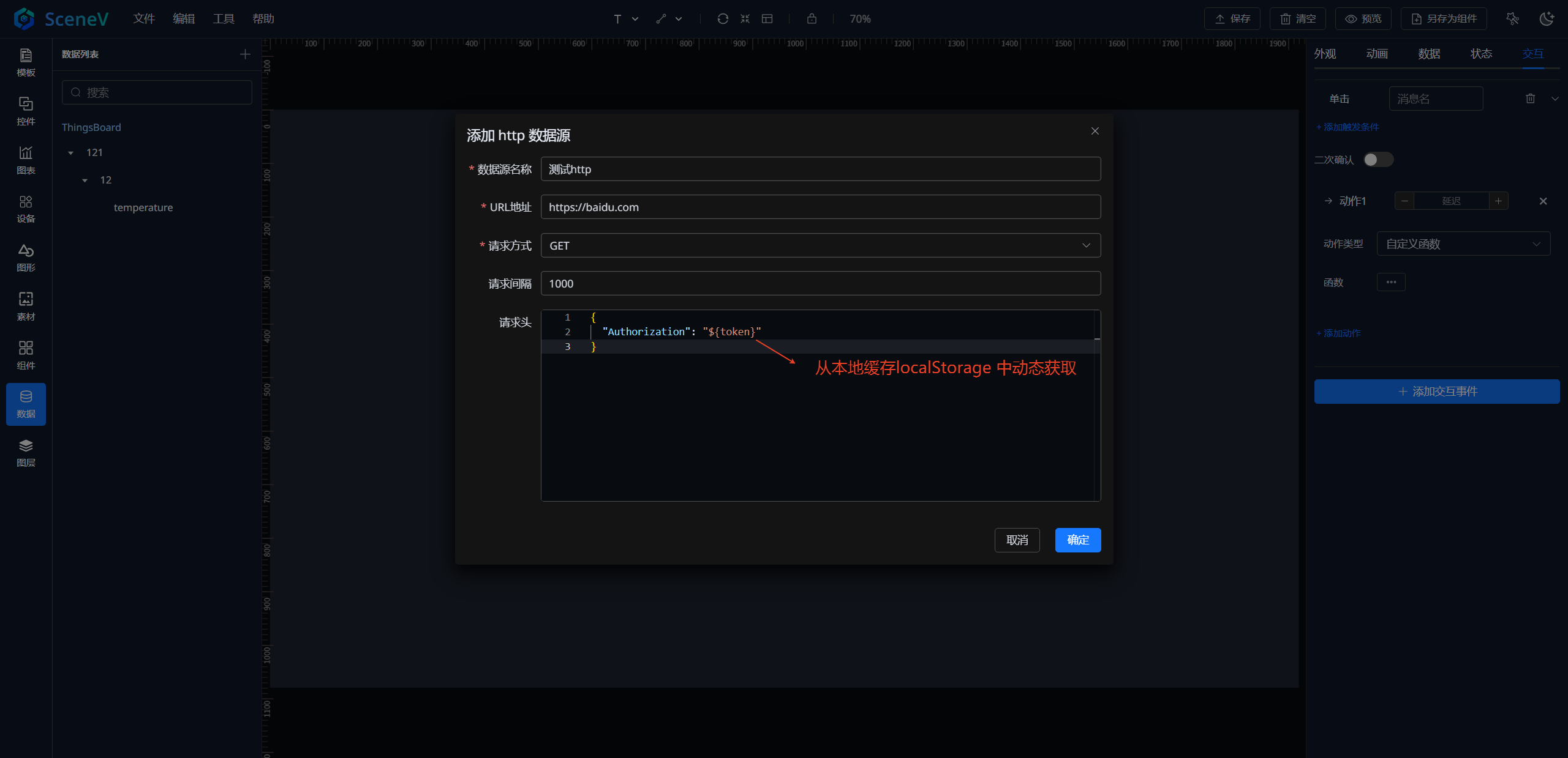无缝集成 ThingsBoard 平台,直接把平台数据展示到大屏。